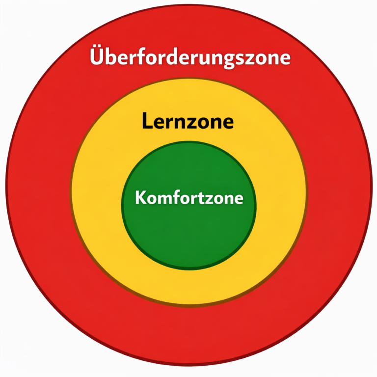 - Lernzone: Erst wenn wir unsere Komfortzone verlassen und neue Dinge erkunden bewegen wir uns in die Lernzone. Hier sind wir Aufnahmebereit um uns zu Entwickeln.